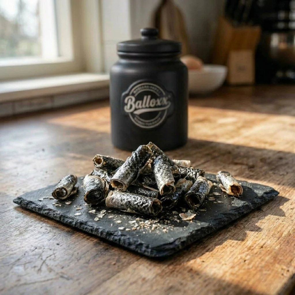 Nordic Salmon Skin Strips sind herrlich knusprige Fischsnacks aus 100% Lachshaut. Voller Geschmack und natürlichem Charakter, perfekt für Hunde, die maritime Snacks mit etwas Biss lieben. Knusprig, lecker und garantiert ein Highlight für jede Hundenase.